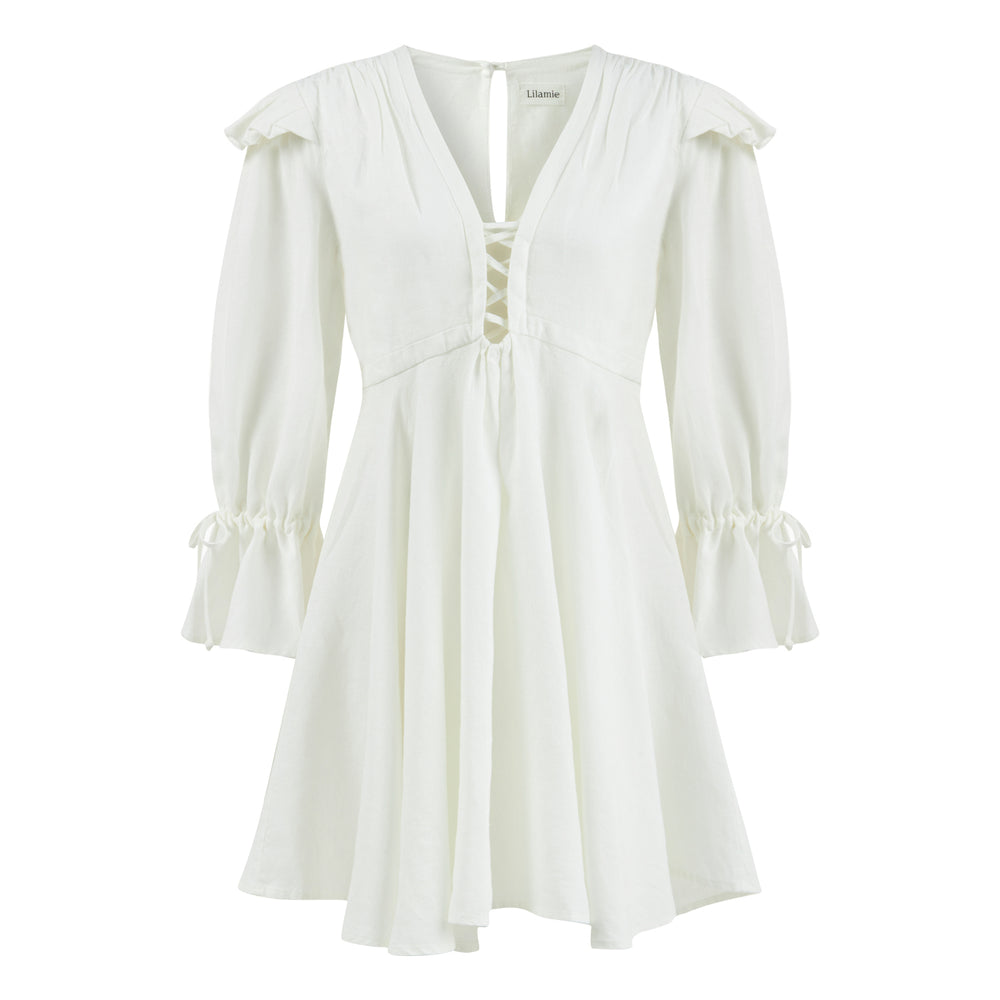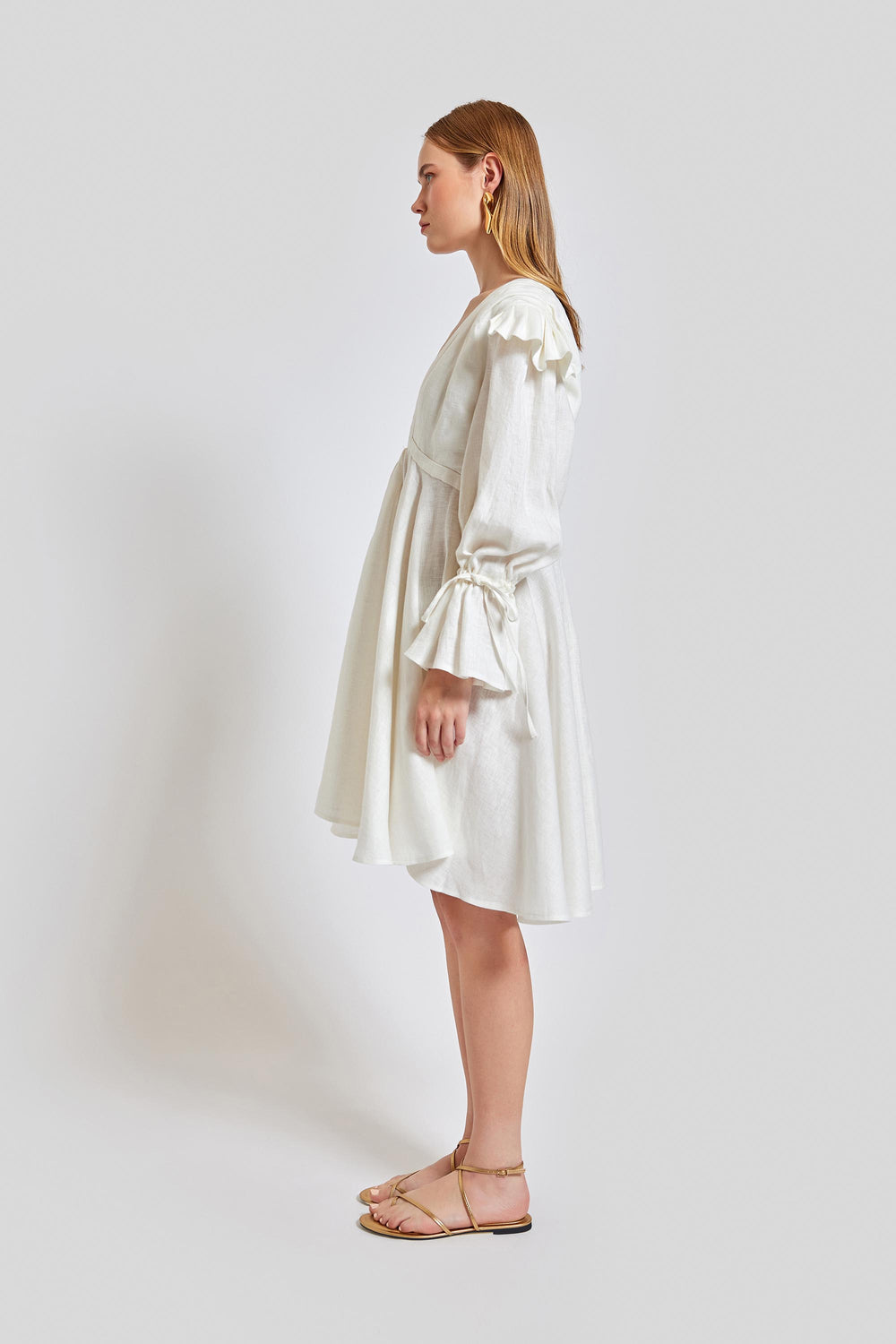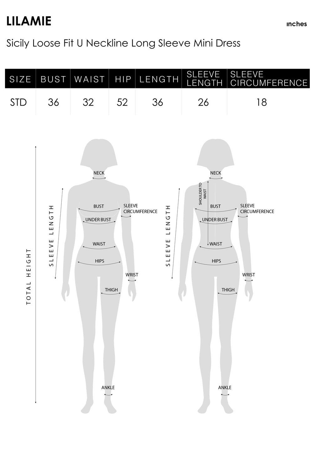 Sicily Loose Fit U Neckline Long Sleeve Mini Dress - White